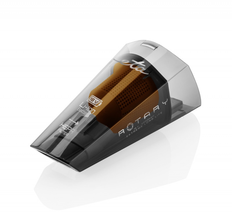 Aspiratorul de mana din noua generatie ETA Rotary va va incanta cu puterea sa mare de aspirare si cu peria turbo rotativa care asigura o colectare eficienta a murdariei. Bateria Li-ion de 18 V de inalta calitate va permite pana la 30 de minute de aspirare continua si poate fi incarcata complet in doar 5 ore.