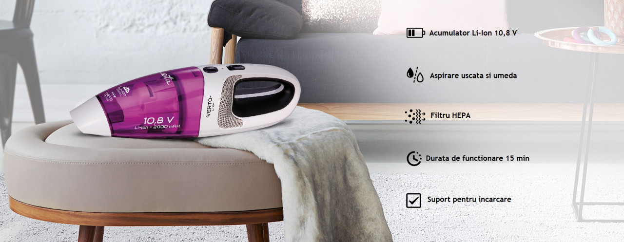 Aspiratorul portabil ETA Verto va fi un mare ajutor atunci cand curatati murdaria superficiala de pe podele, covoare sau tapiterii. Datorita manerului ergonomic, a dimensiunilor mici si greutatii reduse , aspiratorul este foarte confortabil de manevrat.