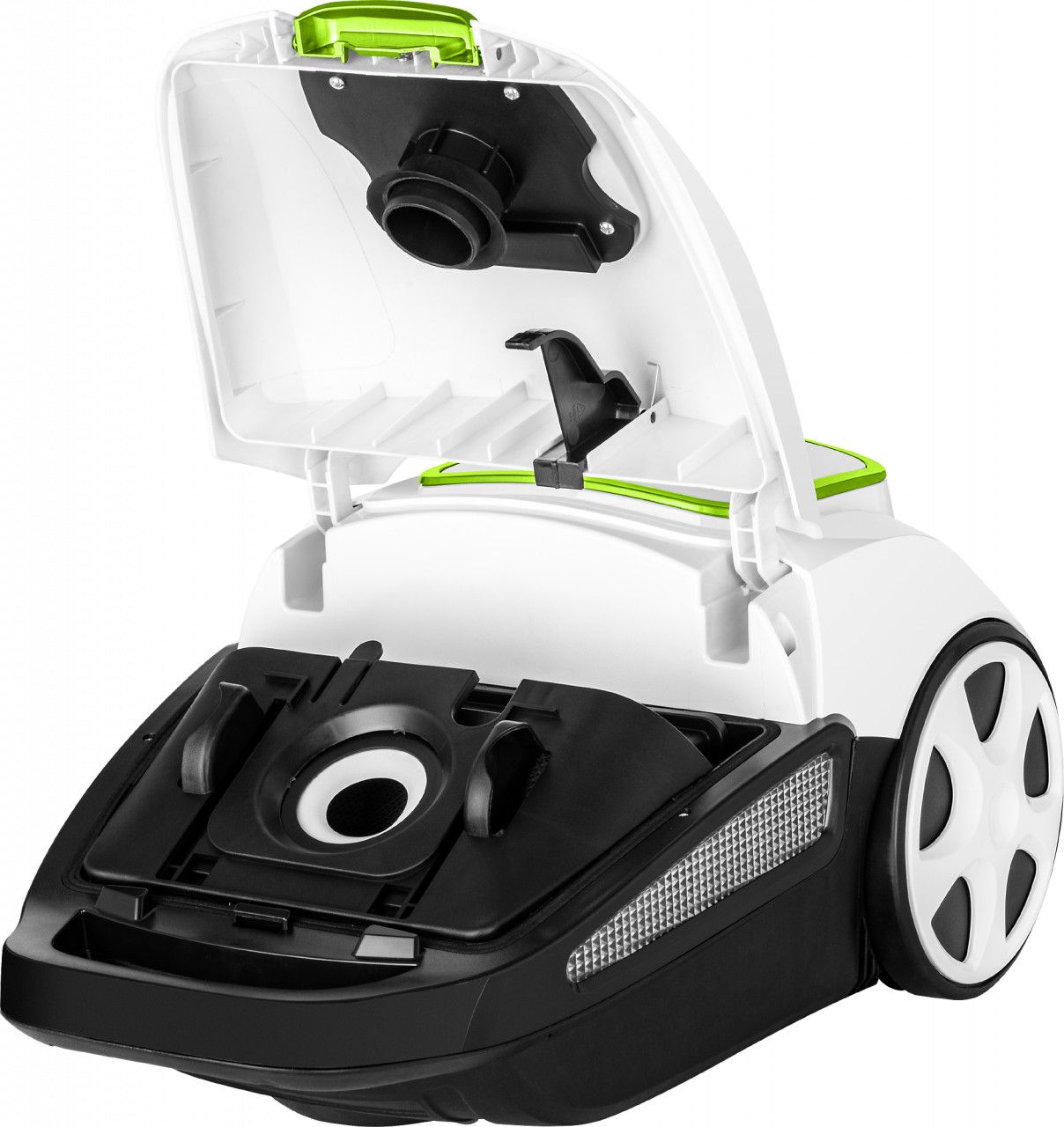 Sacul de praf de 3 l asigura aspirarea de mai multe ori la rand fara a fi nevoie sa il inlocuiti. In plus, aspiratorul este echipat cu un indicator de „sac plin. Acest indicator își schimba culoarea în roșu dacă sacul pentru praf este plin sau atunci cand căile de aspirare sunt blocate în alt mod. Deasemenea, puterea de aspirare poate fi reglata in functie de necesitati.
