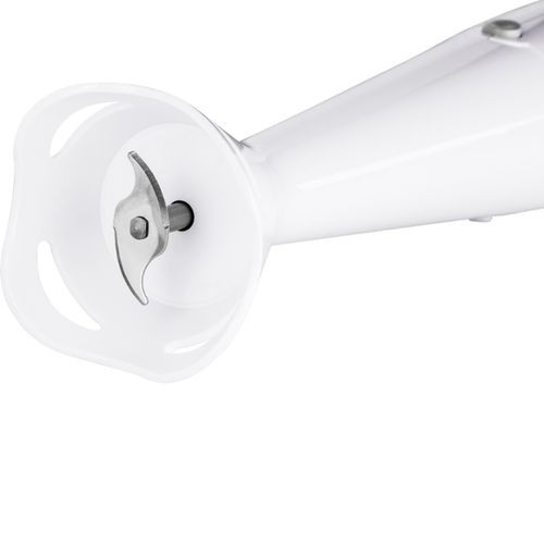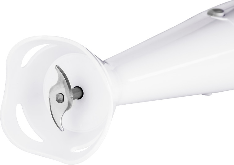 Blenderul este echipat cu o lamă de tocat din oțel inoxidabil. Puteți selecta dintre două viteze de lucru cu ajutorul butoanelor, poziționate în partea superioară a mânerului. După fiecare utilizare, este suficient să ștergeți dispozitivul cu o cârpă umedă., iar cuțitele pot fi spalate foarte ușor în apă cu detergent.