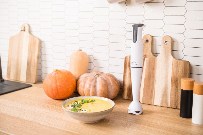 Un blender nu trebuie sa lipseasca din bucataria dumneavoastra. ETA Minestro amesteca si bate smoothie-uri, sosuri si supe cremoase, rapid si eficient. Are un motor puternic cu alimentare la 220V, durata lunga de viata si putere de intrare 350 W.