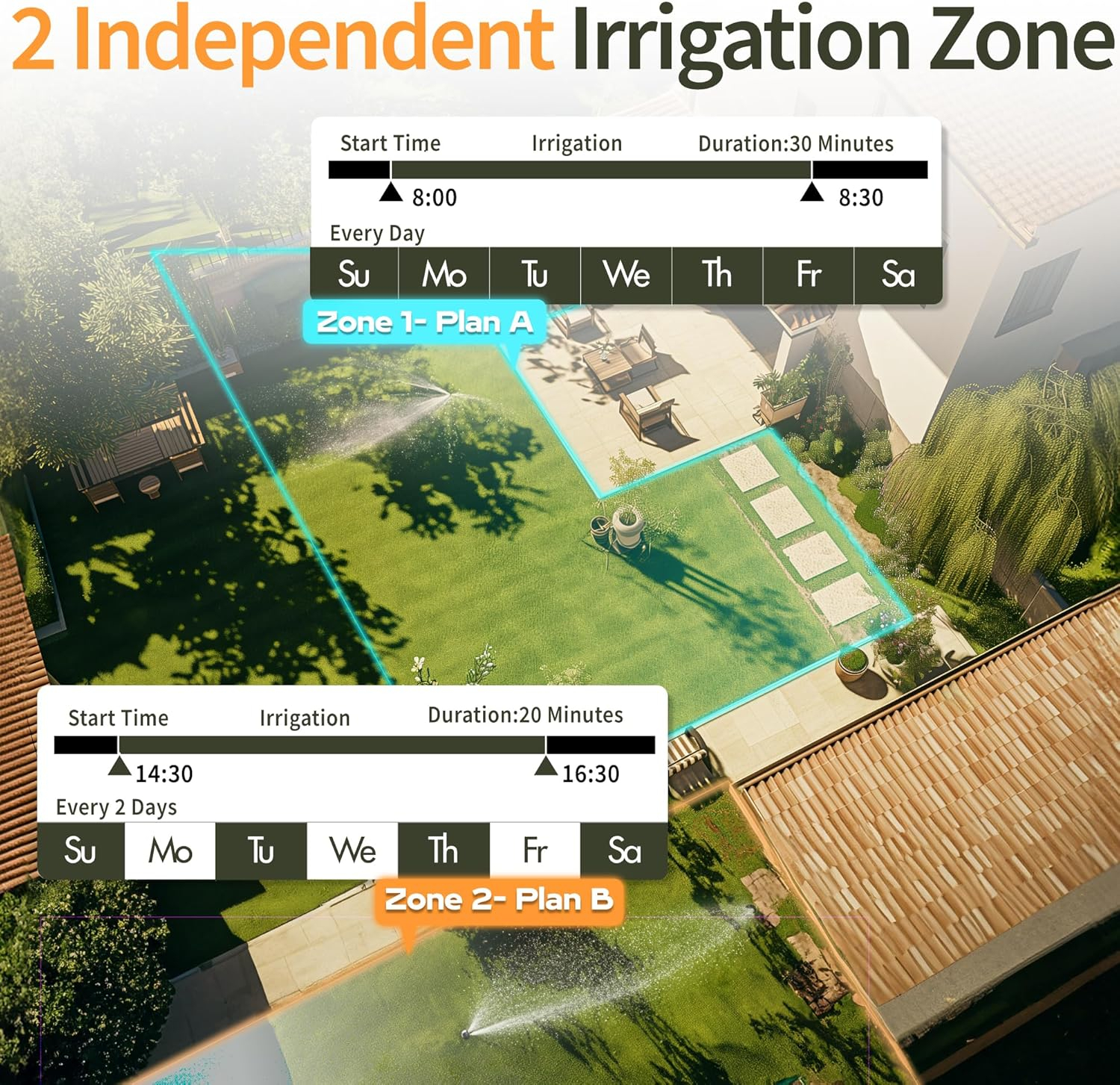 【2 Porturi Timer de Udat Separate】Timerul de udare cu 2 zone face mai usoara programarea udarii separat pentru diferite zone. Poti seta Ora de Start, Durata de Udat intre 1min si 3h59min, Frecventa de Udat de la o data pe ora pana la o data la 12 ore sau de la o data pe zi pana la o data la 7 zile, inclusiv doar zile pare sau doar zile impare. Timerul pentru furtun Diivoo iti ofera mai multa precizie pentru nevoile tale variabile de udare!