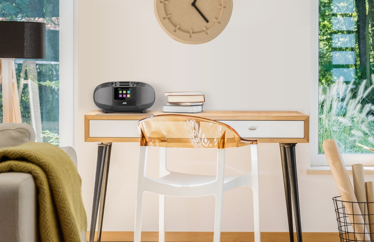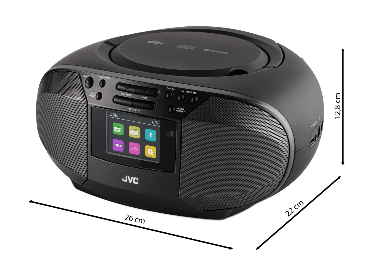 Radioul JVC poate reda CD, CD-R si CD-RW (cu citire MP3). Poti folosi si intrarea USB pentru a asculta fisiere MP3 de pe un stick USB (pana la 32 GB). Sau poti conecta telefonul, tableta ori MP3 playerul prin Bluetooth sau cablul AUX de 3,5 mm. Muzica poate fi ascultata si la casti, pentru momentele in care vrei intimitate.