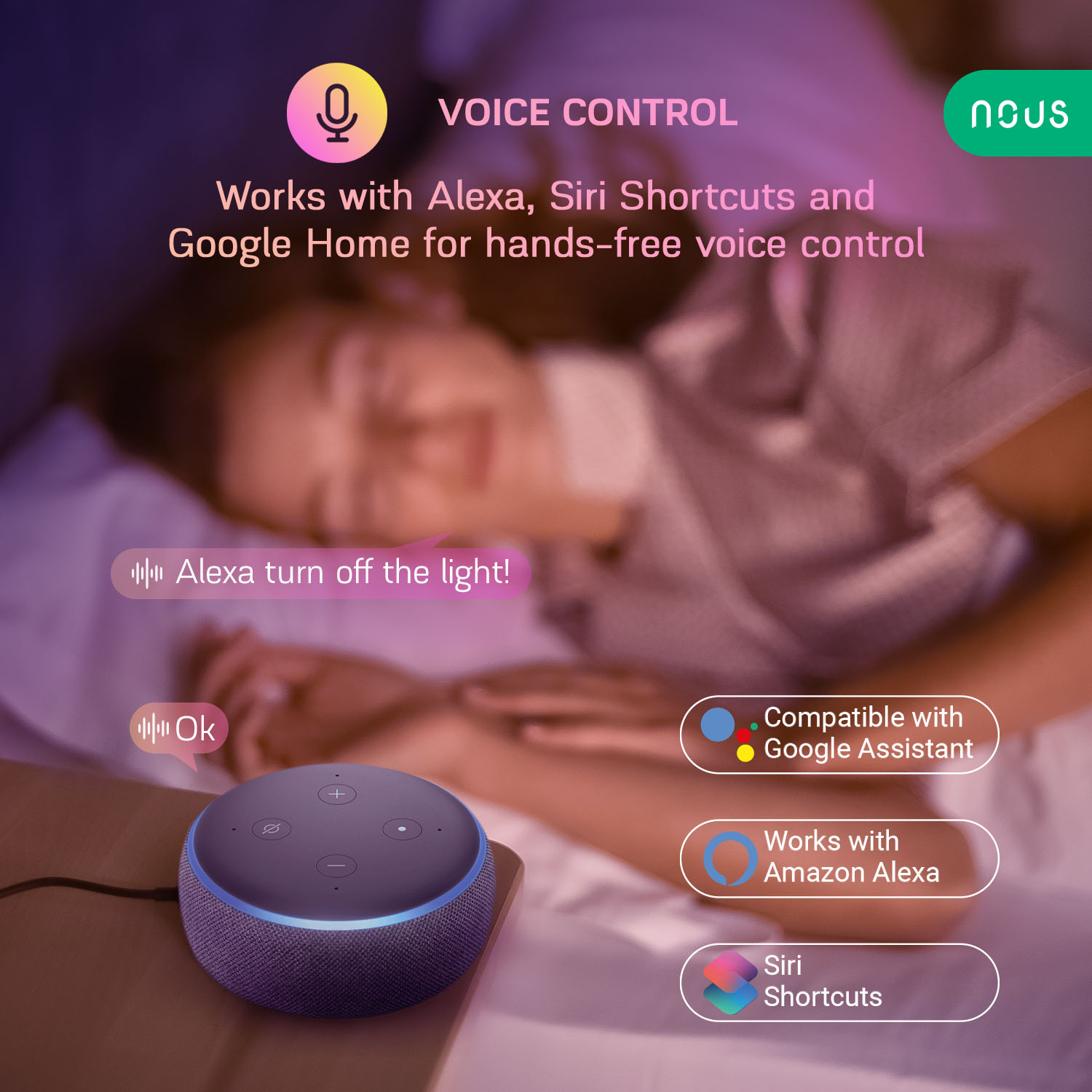 NOUS P3Z Smart Bulb este compatibil cu asistenți vocali precum Alexa și Google Assistant. Puteți folosi vocea pentru a porni/opri, estompa/lumina, schimba culoarea sau setați scene pentru becul dvs. inteligent. De asemenea, poți să-i ceri asistentului vocal să facă lucruri precum „Alexa, setează lumina din sufragerie la albastru” sau „Hei Google, bună dimineața” și ca becul tău inteligent să răspundă în consecință.