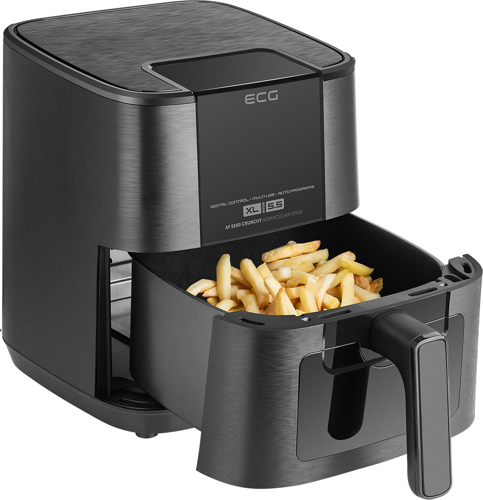 Utilizarea friteuzei cu aer cald ECG AF 5500 Crunchy este foarte simpla si intretinerea extrem de usoara datorita cosului complet detasabil cu finisaj antiaderent.