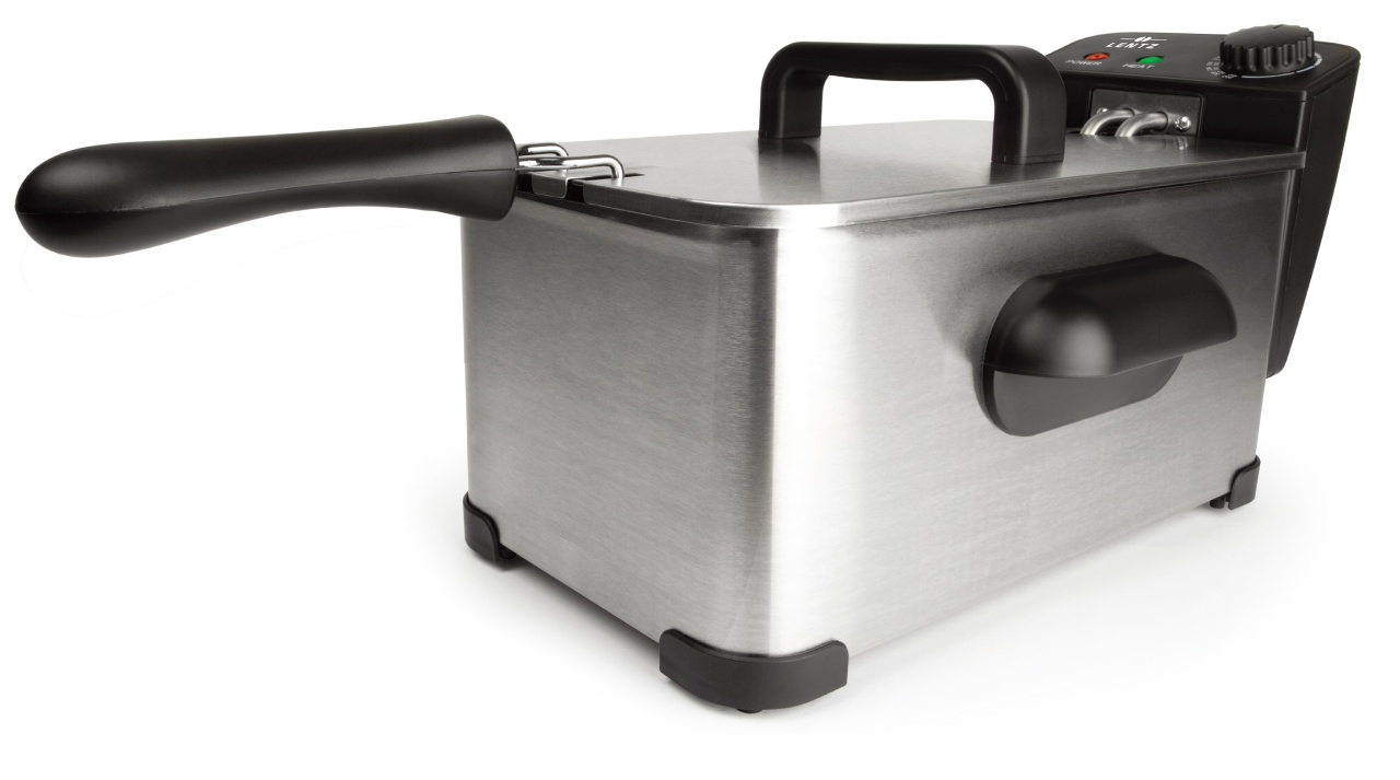Friteuza ofera un control continuu al temperaturii intre 150 si 190°C si o cuva de 3 litri cu suprafata interioara antiaderenta. Modelul este echipat cu picioare antiderapante iar cosul de prajit se poate spala in masina de spalat vase.