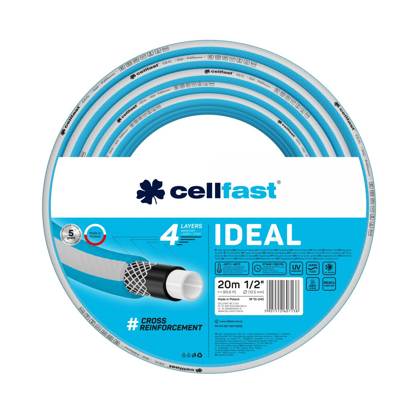 Set furtun pentru gradina Cellfast IDEAL 1 2 20m, protectie UV, antirasucire, pistol stropire, conectori Setul de udare include: Furtun IDEAL Accesorii IDEAL , : pistol pentru stropit HYDRON conector rapid - cu stop conector rapid adaptor multifunctional cu filet interior G3 4 - G1 Furtun cu 4 straturi armatura durabila din fire de inalta calitate cruce impletita rezistent la razele UV si acumularea de alge in interiorul furtunului durabil si flexibil presiune de spargere 27 bar interval de temperatura de functionare -20 +60 С
