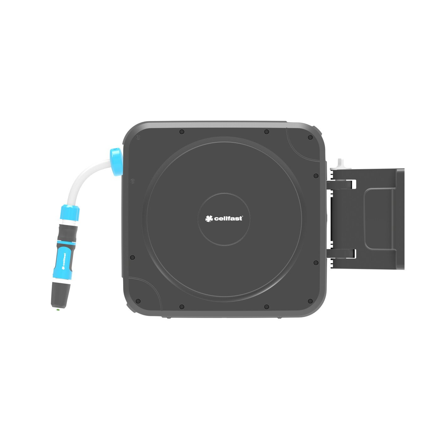 Furtun cu tambur automat Cellfast ERGO, 20+ 2m, 1 2 Fabricat din material rezistent la UV de cea mai inalta calitate. Mecanismul de franare regleaza viteza de derulare. Include un blocaj de rotatie, care previne deteriorarea fatadei cladirii. Cuierul de perete durabil, permite o instalare stabila pe perete a tamburului si rotatia acestuia in intervalul de 180 . Manerele ergonomice de pe ambele parti permit transportarea si agatarea usoara Pachetul include : Tambur automat ERGO , , Cuier de perete, furtun de gradina 20m, 1 2 , Furtun de conectare 2m, duza de furtun reglabila ERGO , (53-300), Conectori rapizi pentru furtun cu si fara stop ERGO , (53-130, 53-120), Adaptor multifunctional cu filet interior ERGO , G1 2 , G3 4 , G1 (53-210)