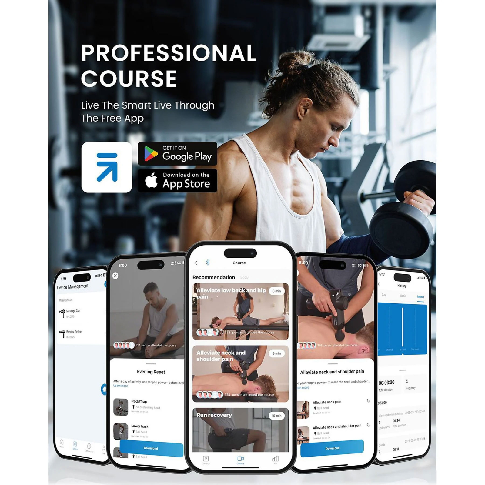 Conectivitate Smart Bluetooth: Conecteaza pistolul la smartphone-ul tau pentru a accesa rutine personalizate si pentru a-ti monitoriza progresul in timp real prin aplicatia dedicata.