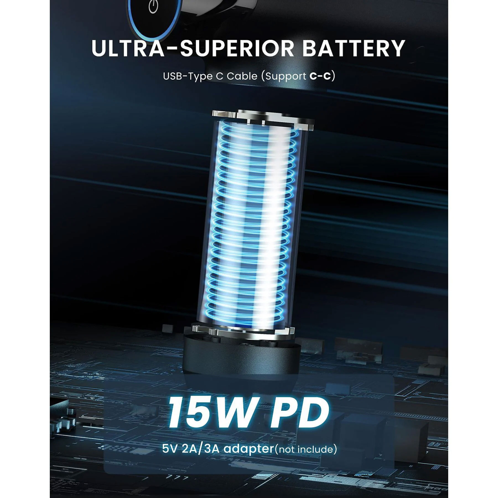 Autonomie si Incarcare Facila: Bateria reincarcabila ofera pana la 3 ore de utilizare continua, iar portul de incarcare USB-C asigura o compatibilitate universala si o incarcare rapida.
