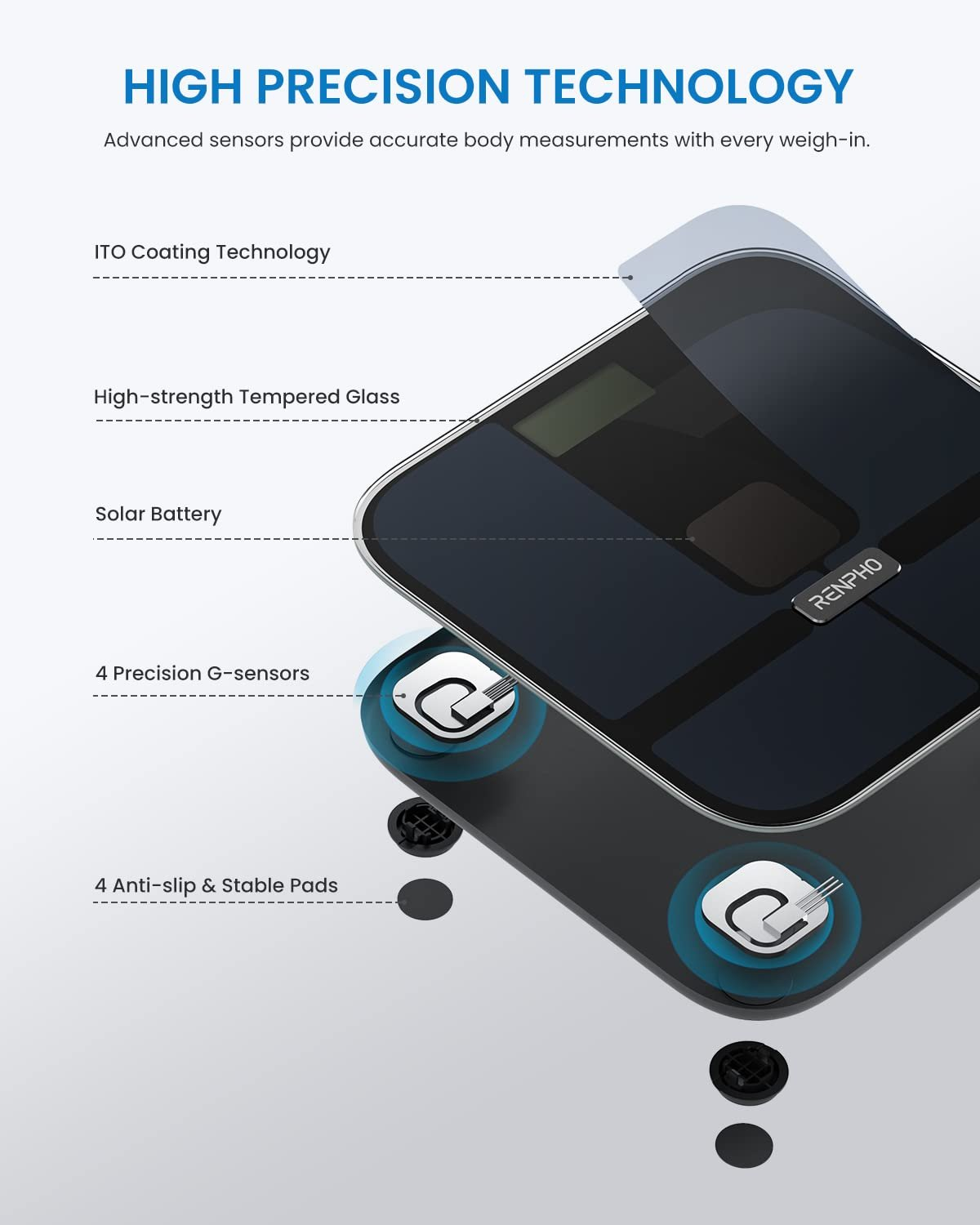 Cantar SMART Digital RENPHO R-A020 - Body Composition, Alimentare Solara, Greutate, Grasime Corporala, Muschi, Oase, Bluetooth, Apple Health, Fitbit, Samsung Health