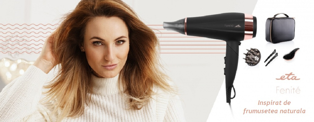 Puternicul uscator de par in design elegant Black Edition de la ETA ofera parului dumneavoastra o ingrijire superioara. Nu numai datorita puterii de 2200 W dar si datorita functiei de ionizare care elimina electricitatea statica din par si il protejeaza de uscare.