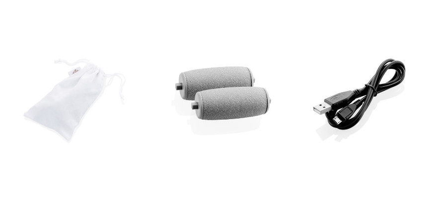 Pachetul include: cablu micro USB, suport, husa pentru calatorie si 3 role