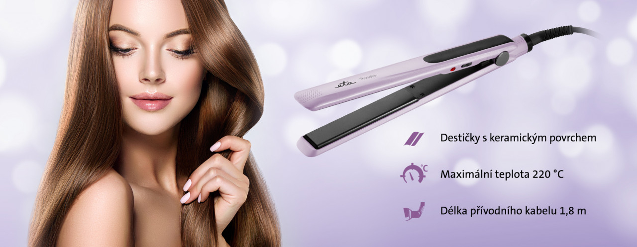 Designul mov corespunde perfect gingasiei si elegantei cu care va ingrijiti parul. Sistemul PTC incalzeste in cateva momente si mentine automat o temperatura constanta. Placile cu suprafata ceramica adera perfect la par astfel incat sa indrepte suvitele rapid si eficient. Functionarea este semnalizata luminos de un LED si protectia impotriva supraincalzirii confera siguranta in utilizare.