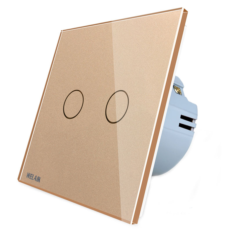Welaik Intrerupator dublu cu touch Welaik panou din sticla, Gold