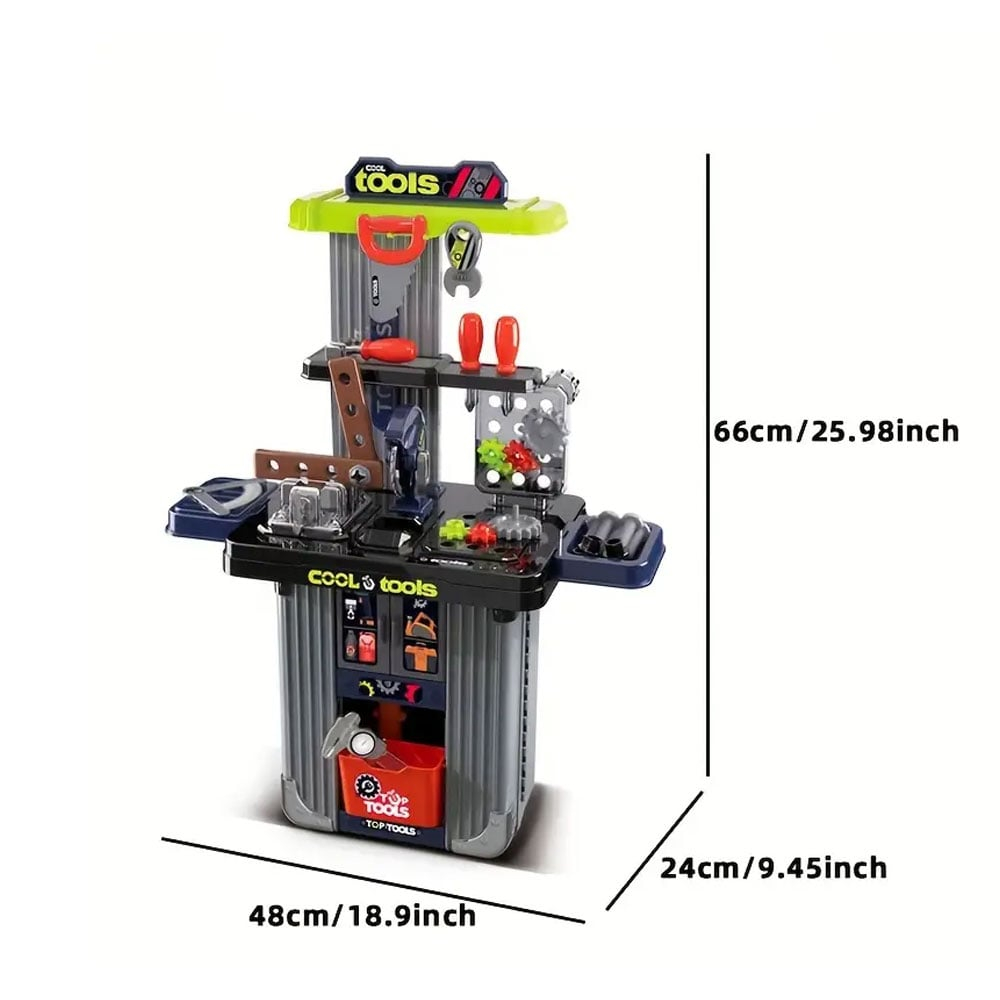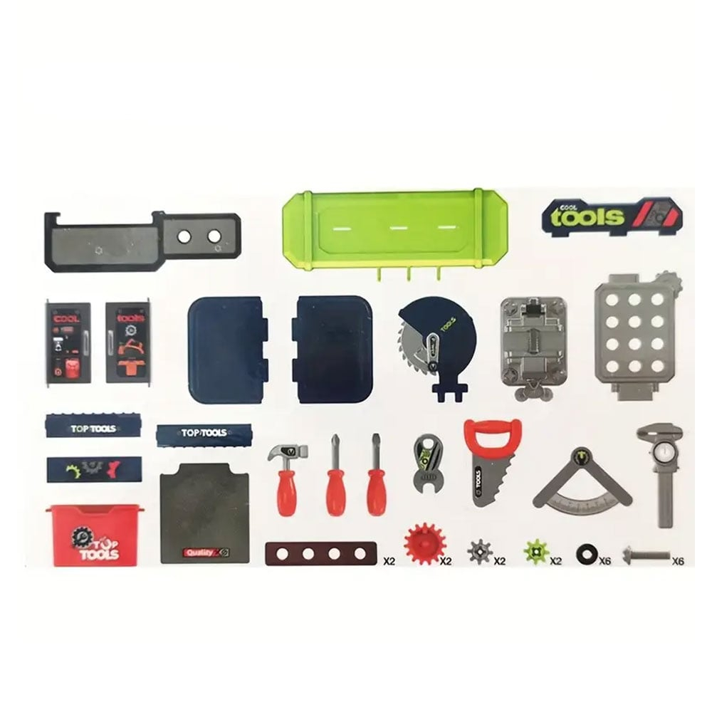 Banc de lucru jucarie Rovo 102A, cu unelte si accesorii, 42 piese