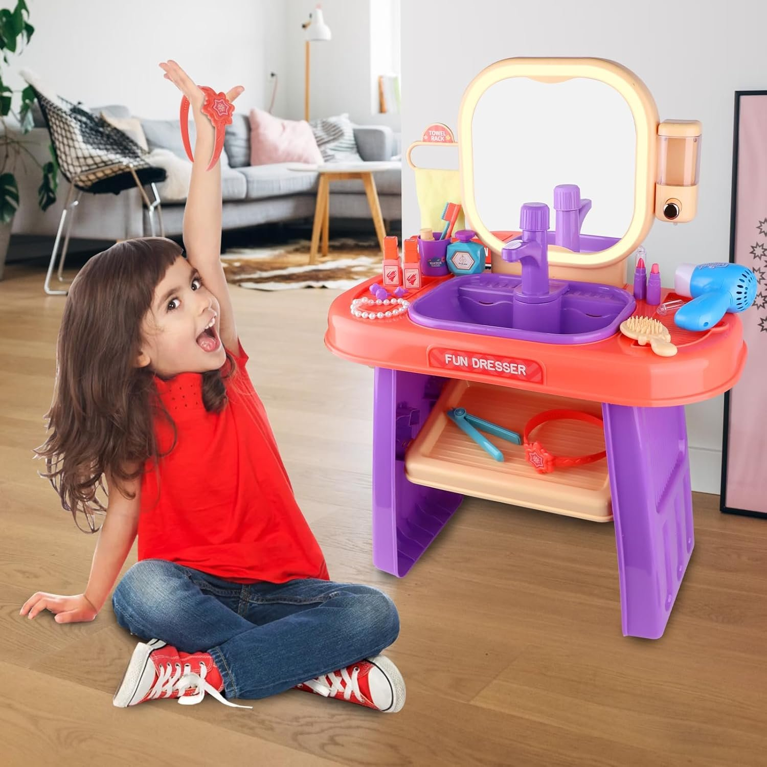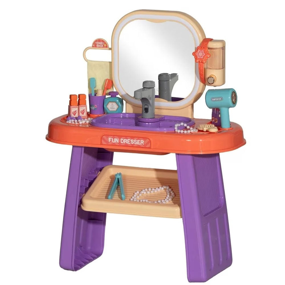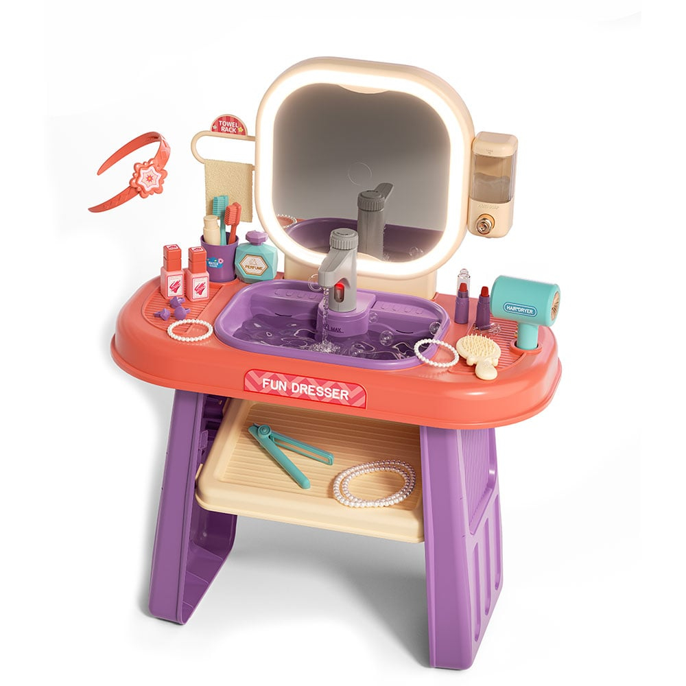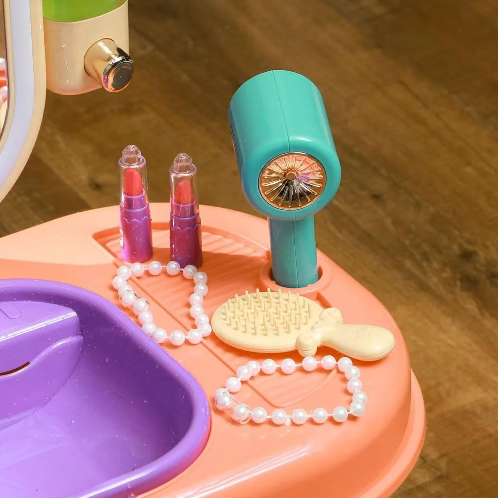 Măsuță de machiaj cu lumini LED și muzică pentru joacă de rol elegantă.