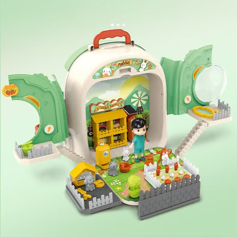Set ghiozdan jucarie 3 in 1 Rovo 999-2, Iepuras, Fermier, Accesorii incluse