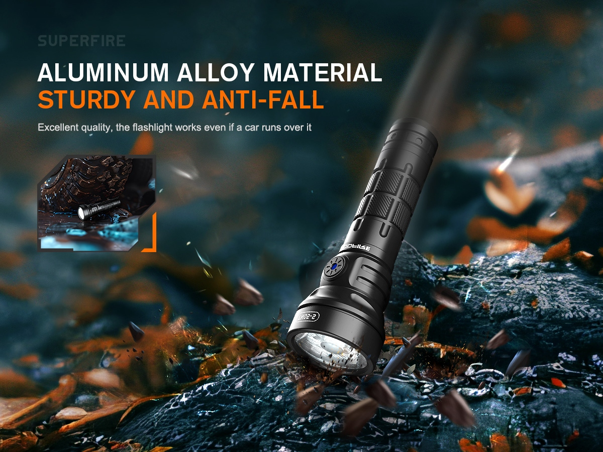 Construcție durabilă și fiabilăFabricată din aliaj de aluminiu durabil de calitate aeronautică, această lanternă este construită pentru a rezista la intemperii. ; Tehnologia impermeabilă IP55 și designul de etanșare permit acestei lanterne strălucitoare să fie folosită în orice conditii vreme rea; Indiferent dacă explorați în aer liber sau vă ocupați de sarcinile casnice, fiți siguri că acesta lanterna pentru situații de urgență este la înălțimea provocării Designul său rezistent la apă și la șocuri asigură că rămâne funcțională în cele mai dificile medii.