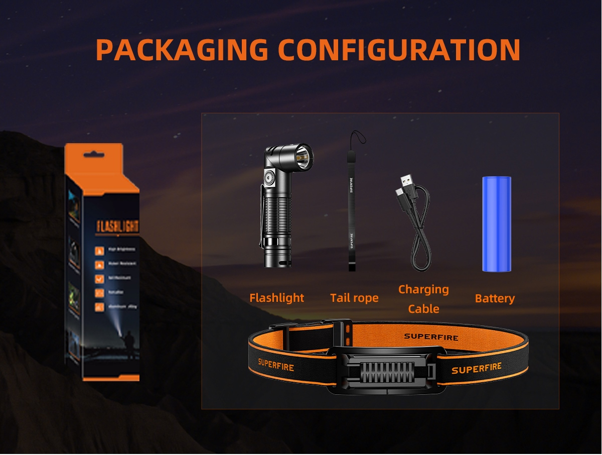 Având o chingă elastică înaltă, lanterna funcționează și ca lanternă frontală, oferind o potrivire confortabilă și respirabilă pentru o purtare prelungită. Clema sa bidirecțională pentru curea facilitează atașarea ușoară la curele sau curele, asigurând stabilitatea în timpul mișcării.