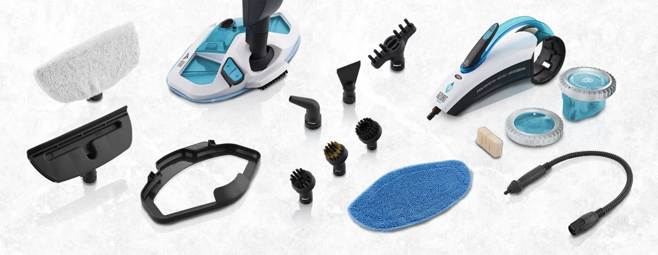 Gama larga de accesorii permite curatarea podelelor, bailor, chiuvetelor, toaletelor, caloriferelor, gratarelor, imbinarilor, ramelor ferestrelor, tapiteriei, etc.