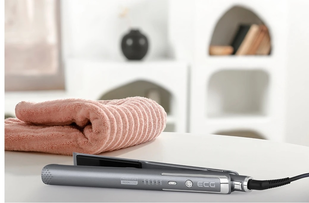 Ofera parului tau ingrijirea pe care o merita. Placa ECG Modifica Straight Moonstone este echipata cu un generator de ioni, care transforma coafarea acasa intr-o experienta profesionala. In timpul utilizarii, elibereaza ioni negativi care neutralizeaza electricitatea statica din par. Astfel, parul nu se mai electrizeaza, nu se infoaie si ramane neted si uniform. In plus, tehnologia de ionizare inchide cuticulele firului de par, ajutand la pastrarea umiditatii naturale in interior. Rezultatul: par catifelat la atingere, stralucitor si usor de aranjat, fie ca iti doresti un look perfect drept sau doar varfuri netede.