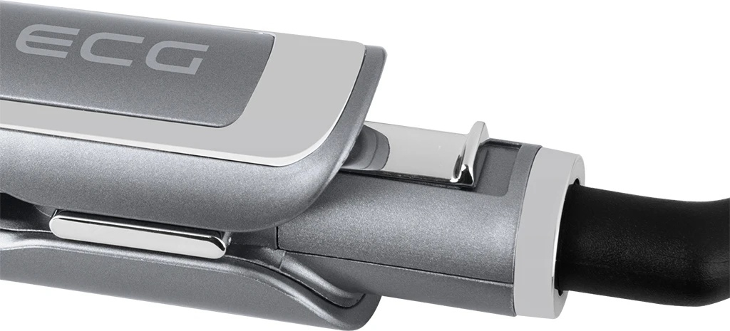 Placa de par ECG Modifica Straight Moonstone impresioneaza prin designul sau modern, in nuante de gri, dar si prin detaliile practice. Cablu de alimentare cauciucat si durabil, cu capat rotativ si lungime de 1,8 metri, iti ofera libertate deplina de miscare in timpul coafarii. Iar cand nu o folosesti, cablul poate fi strans usor cu ajutorul benzii elastice de prindere. Pe scurt, aceasta placa iti ofera ingrijire profesionala si styling perfect, oricand si oriunde.