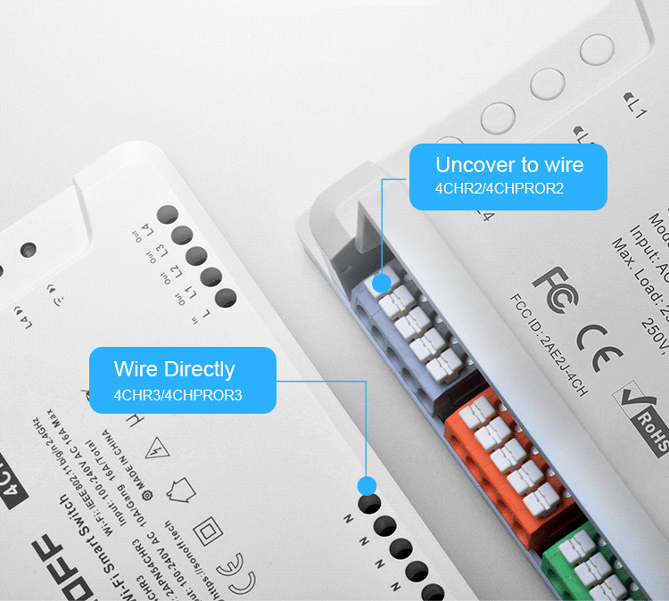 Utilizatorii pot opera de la distanta dispozitivele conectate prin intermediul aplicatiei gratuite eWeLink disponibile pe platformele iOS si Android sau cu o telecomanda radio RF 433 MHz. Asistenta vocala si colaborarea cu asistenti inteligenti sunt posibile si prin compatibilitatea cu Amazon Alexa, Amazon Echo, Echo Dot, Amazon Tap, Asistent Google, Google Home, Google Nest, IFTTT.