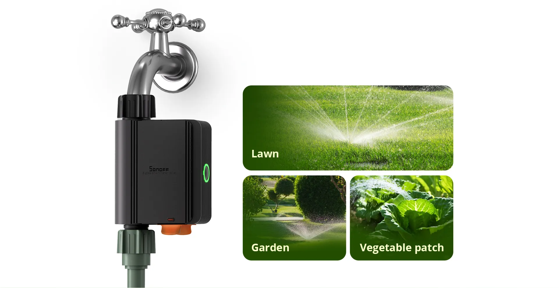 Pur si simplu conectati supapa de apă inteligenta Zigbee între robinet si furtun pentru a va crea rapid sistemul de irigare în doar trei minute, udand automat gazonul, gradina, zona de legume și multe altele.