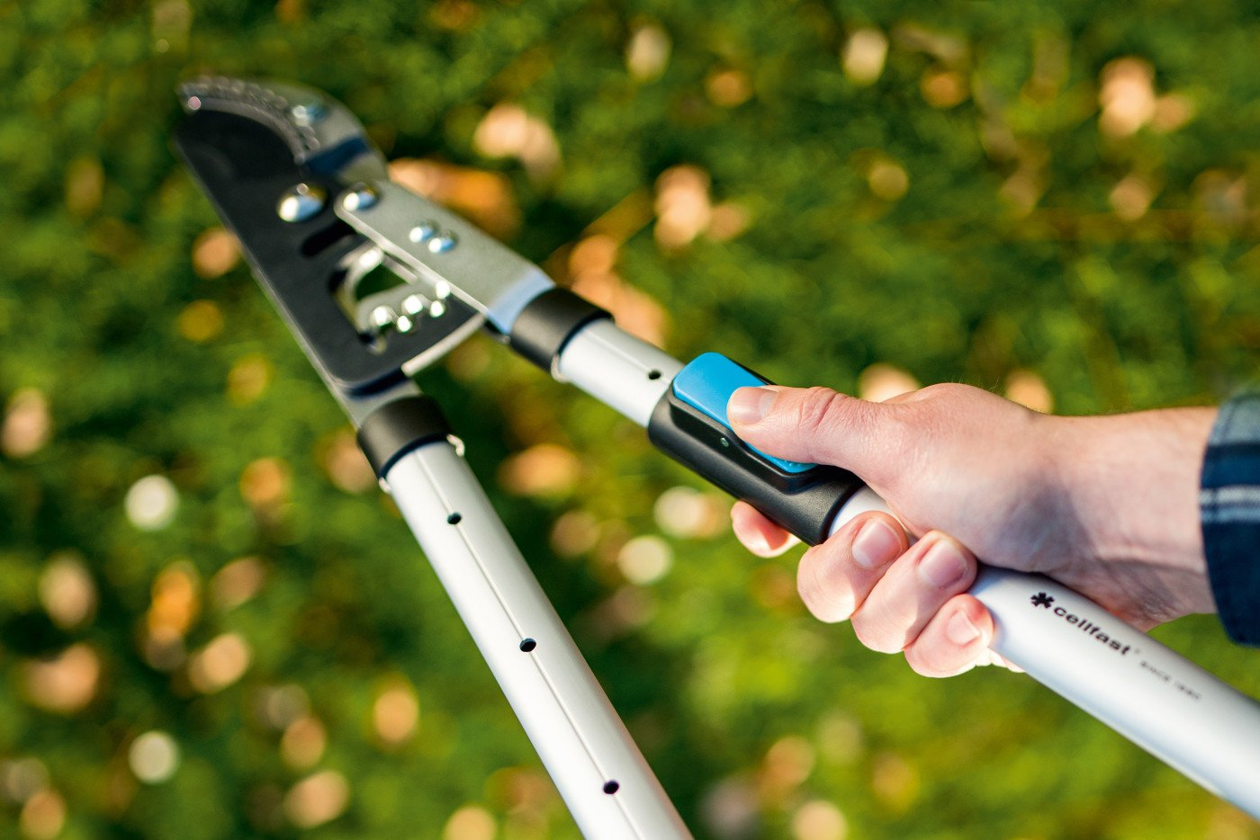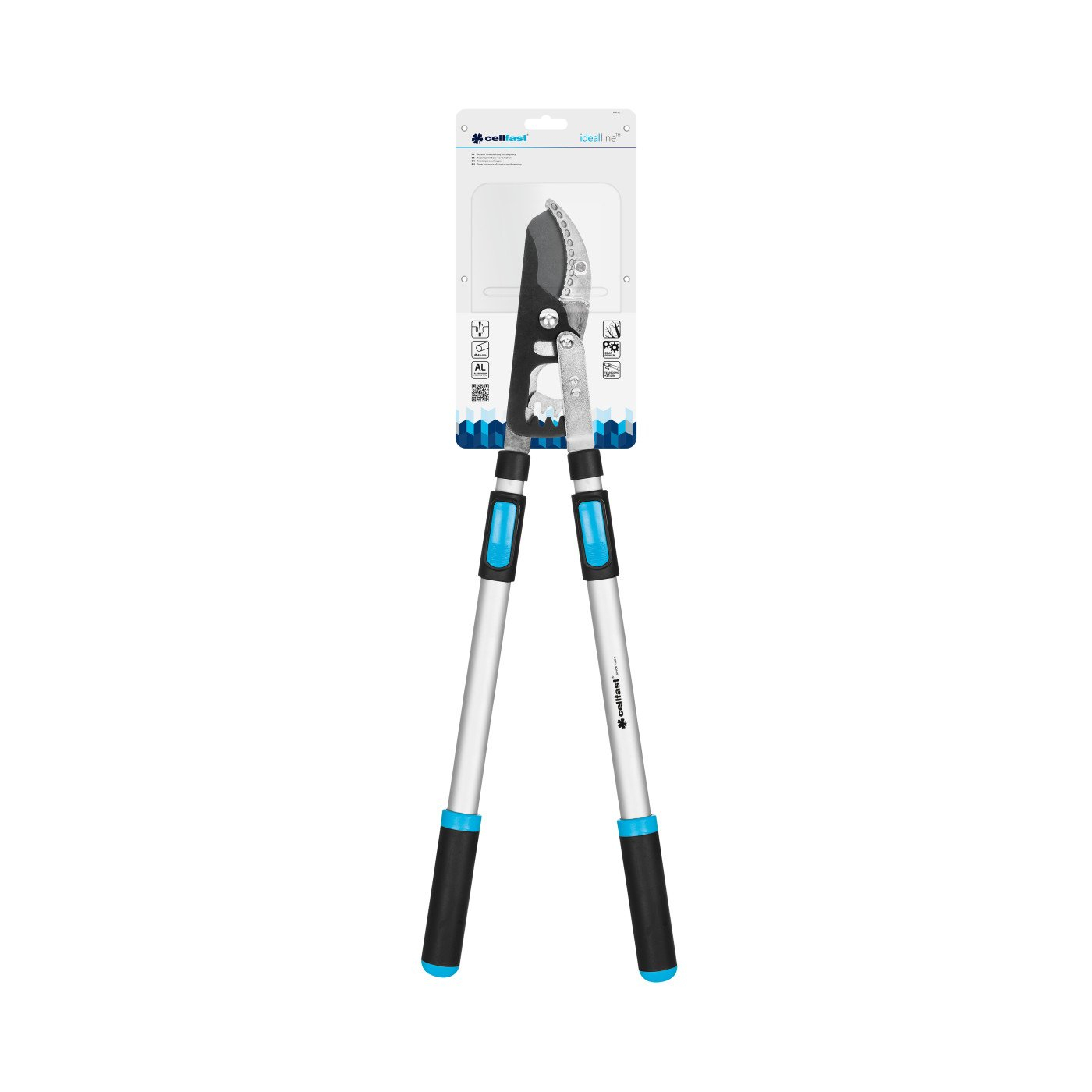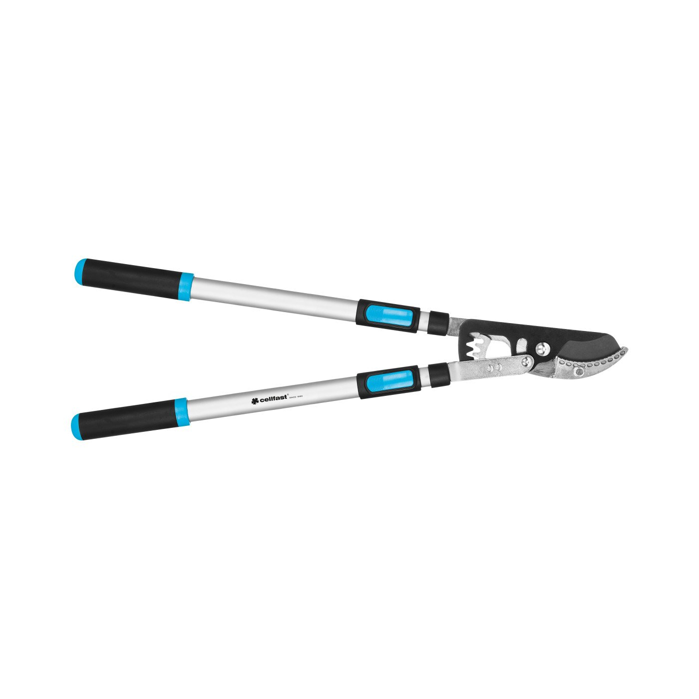 Foarfeca pomicultura silvicultura Cellfast brate telescopice nicovala IDEAL bucla de nicovala cu doua maini conceputa pentru taierea ramurilor uscate si a lastarilor angrenajul aplicat creste forta de taiere diametru maxim de taiere 45 mm suprafata antiderapanta SAFETOUCH, ofera aderenta sigura si confort de utilizare manere usoare si rezistente din aluminiu lama acoperita cu suprafata antiaderenta optiunea telescopica permite extinderea usoara si rapida a manerului cu 31 cm suplimentari